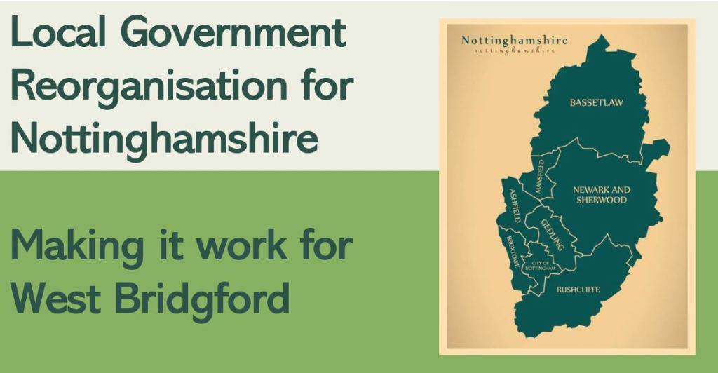 So basically, I want to go back to the old days with a West Bridgford Town Council for local things, and Nottinghamshire in its historical boundaries for key public services. This would reduce duplication but needs to be done in a way that protects staff and allows them to provide even more valuable services. Reorganisation cannot be an excuse to continue the severe underfunding of local government which started with the austerity policy of the 2010s.